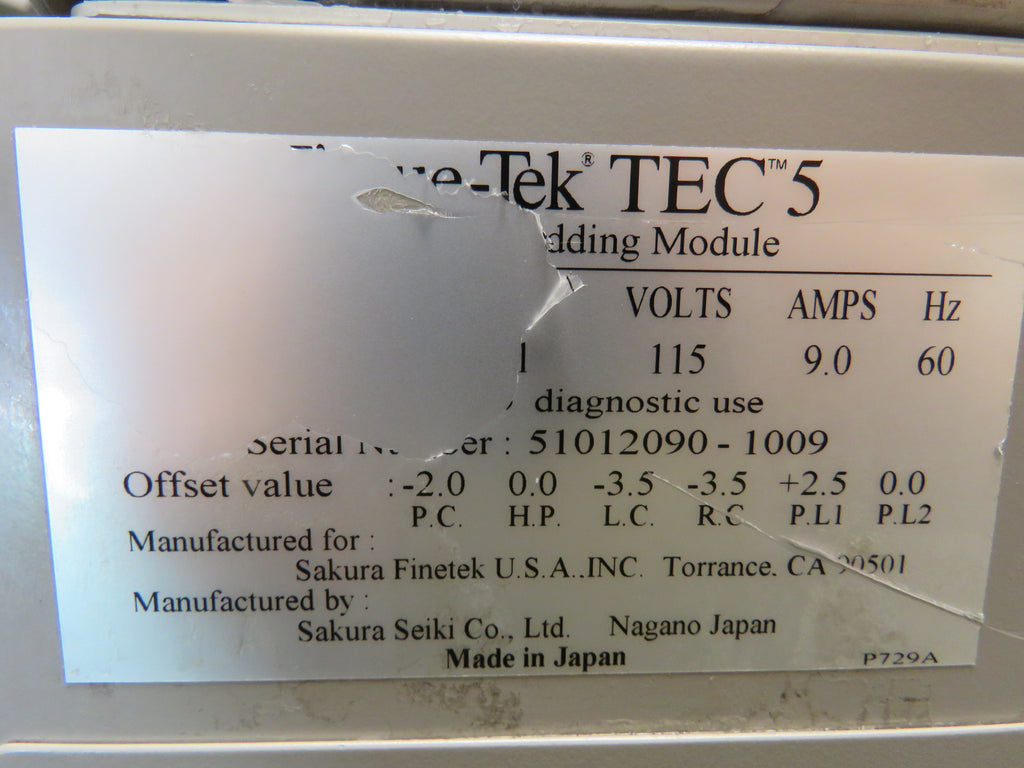 - Sakura Tissue-Tek TEC 5 Tissue Embedding console p/n TEC 5 EMA-1 115 Volts