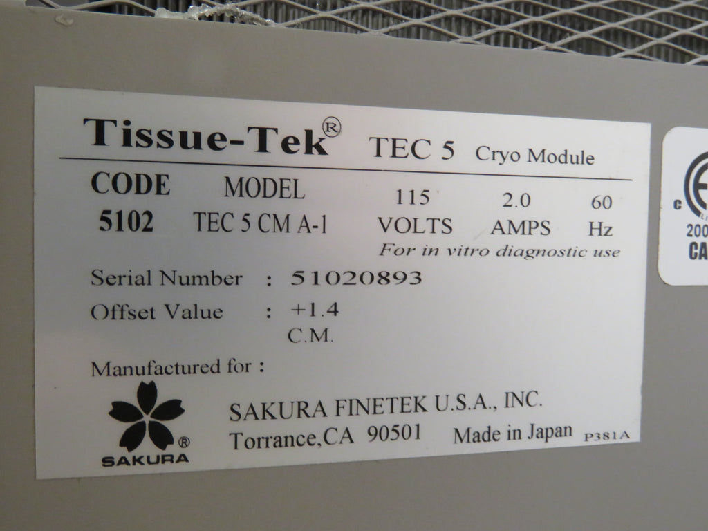 - Sakura Tissue-Tek TEC 5 Cryo module p/m TEC 5 CM A-1 / 115 Volts