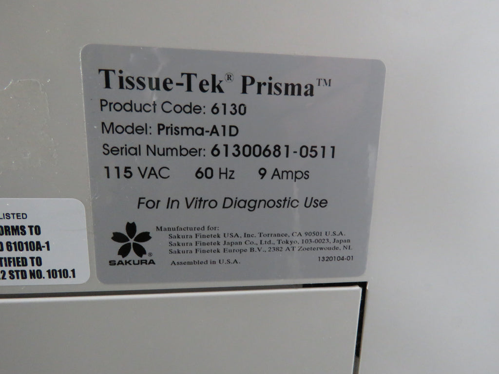 Overall, the Sakura Tissue-Tek Prisma 6130 Slide Stainer Workstation is a versatile and efficient tool that is well-suited for use in histology and pathology laboratories. It is capable of staining slides at a high speed and with consistent results, and is designed with advanced technology and user-friendly features to make it easy to use and maintain.