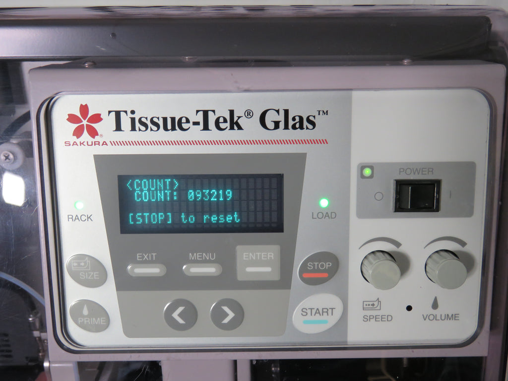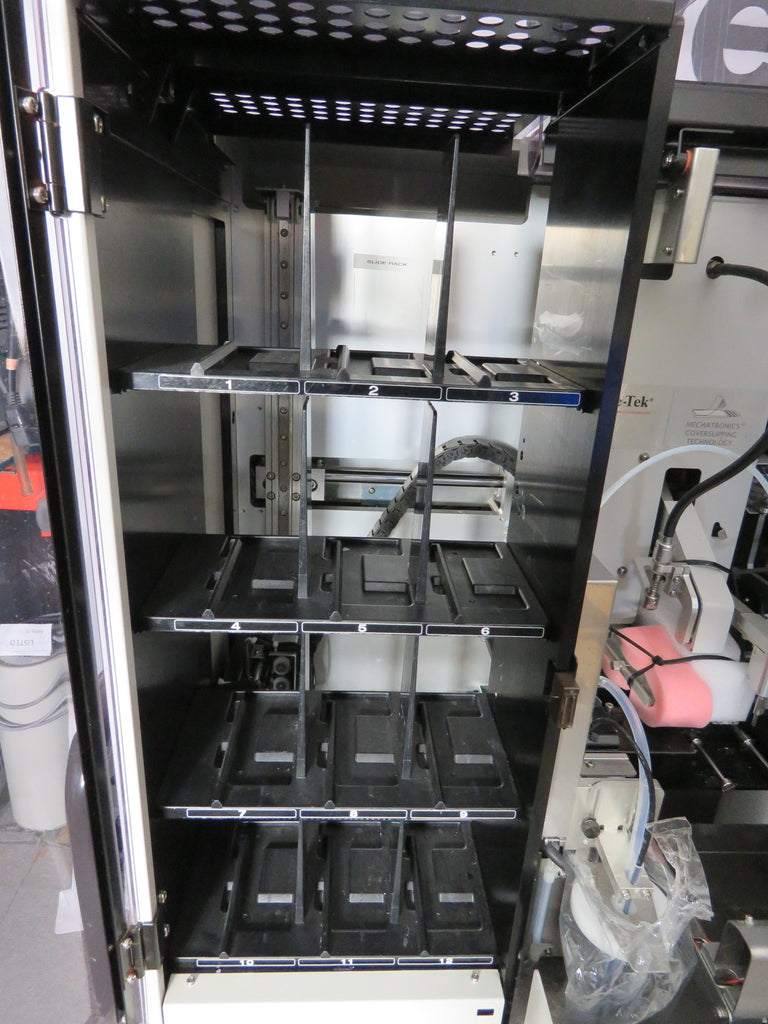 The Tissue-Tek Glas g2 Glass Coverslipper utilizes automation that offers the latest technology ensuring that each slide is perfectly coverslipped and clean. Up to 9 customizable programs can be stored that specify different coverslip size, speed and volume of mounting medium to handle different specimen types and applications. Make on-the-fly changes to the volume of mounting medium and coverslipping speed without interruption of the coverslipping process.