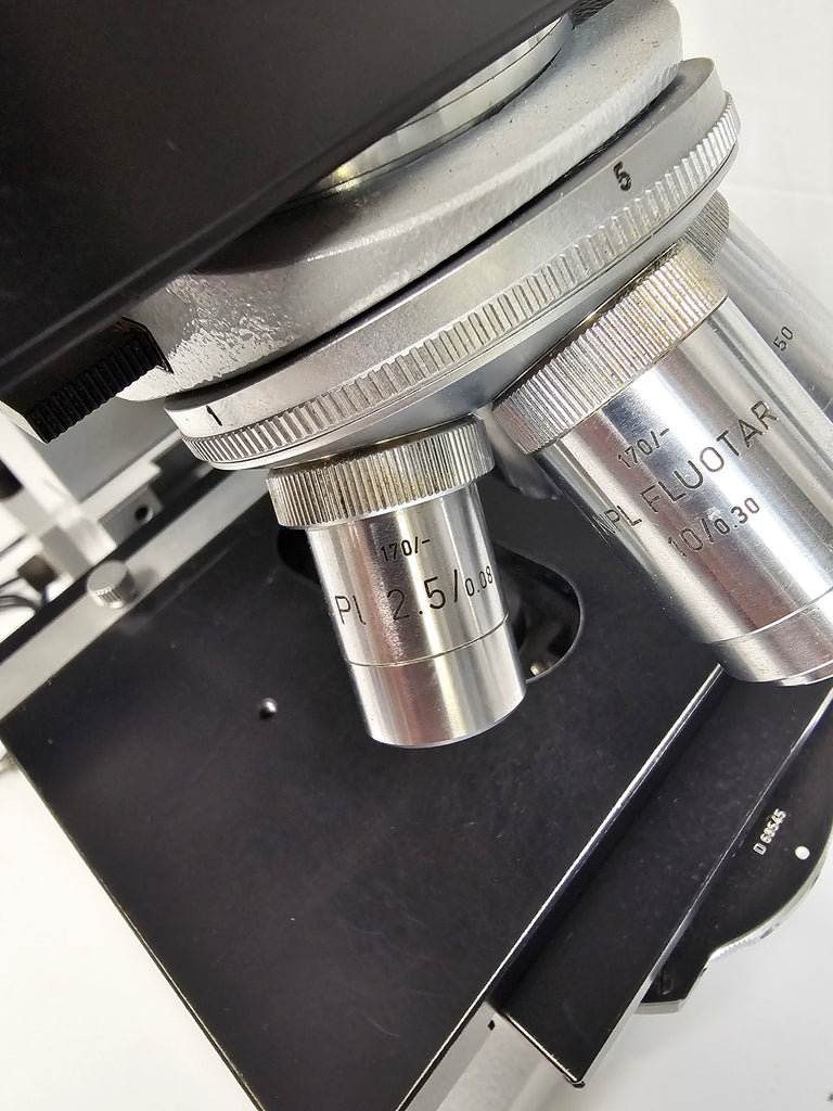 Leitz Dialux Trinocular Head Microscope w/ four objectives