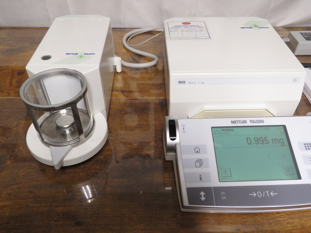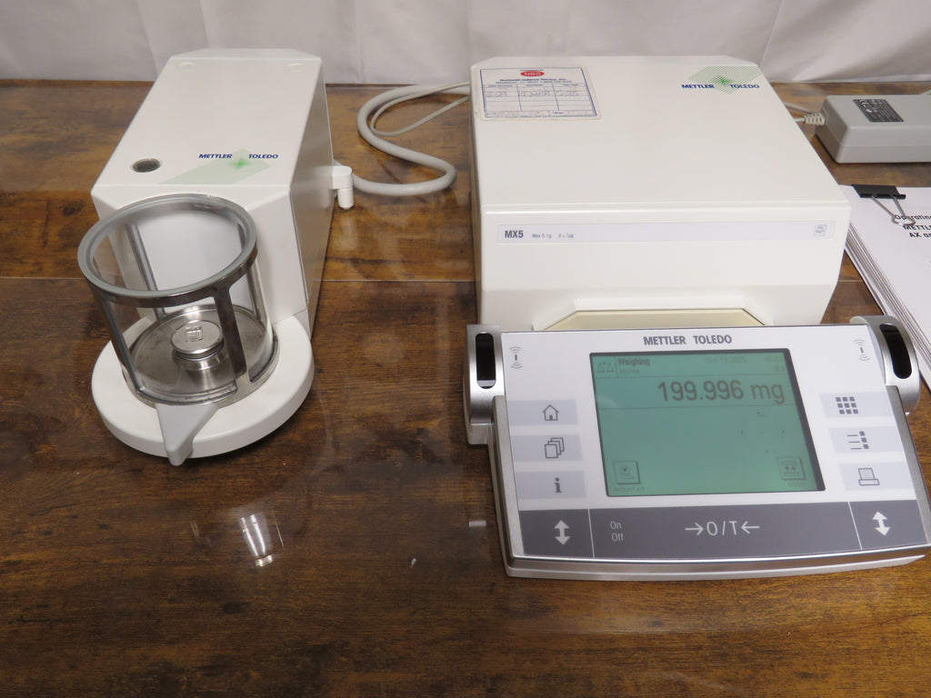 The Mettler MX5 is a high-precision analytical balance designed for precise weight measurements in a variety of applications. It features a large, easy-to-read display, advanced weighing technology, and high resolution for accurate results. The MX5 is suitable for use in pharmaceuticals, food and beverage, chemistry, and materials testing, among others. It has various advanced features, such as automatic internal adjustment, a stability indicator, and an overload protection system to ensure consistent and reliable results. The balance also features a user-friendly interface and simple operation, making it an efficient and effective tool for routine and complex weighing tasks. The Mettler MX5 provides fast and accurate weight measurements, making it an indispensable tool for quality control and research.