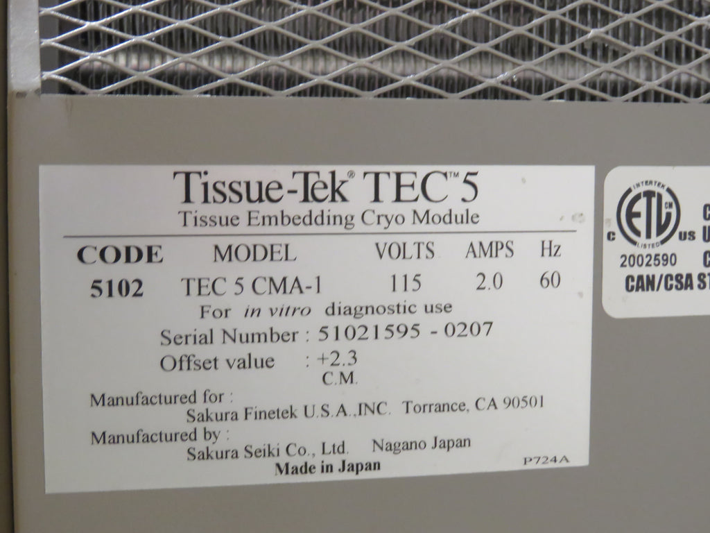 - Sakura Tissue-Tek TEC 5 Cryo module p/m TEC 5 CM A-1 / 115 Volts