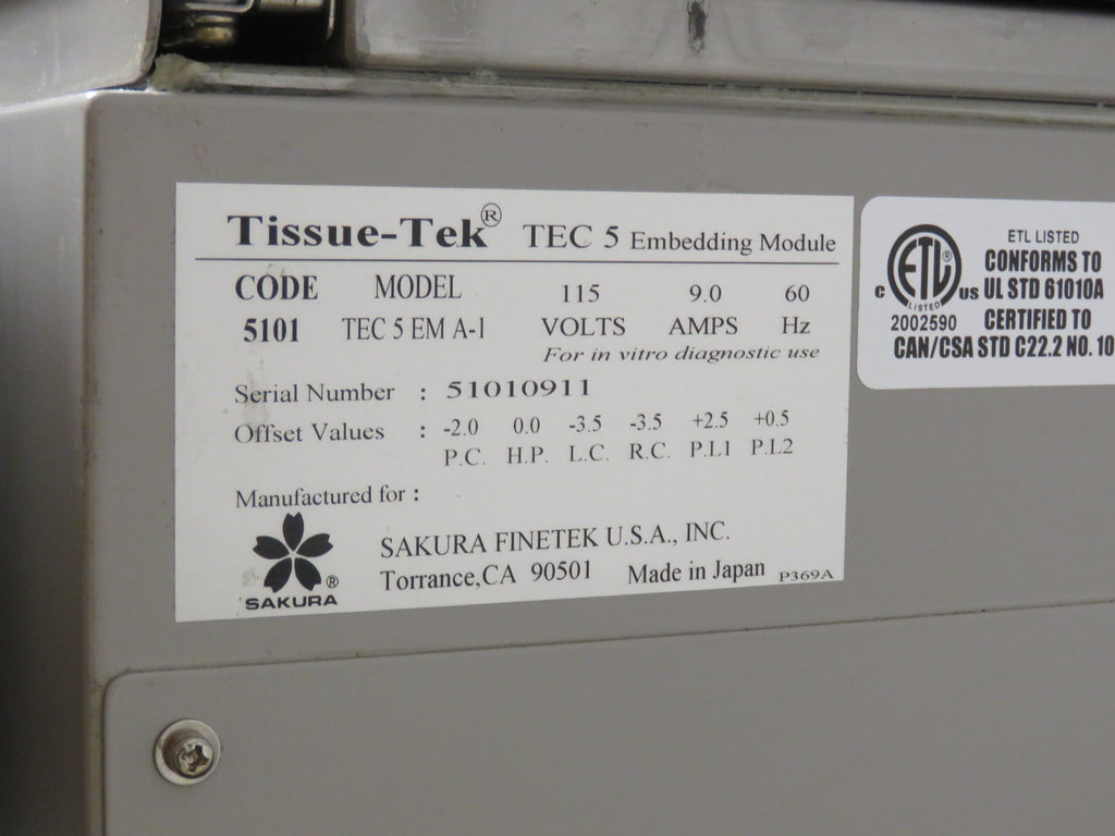 - Sakura Tissue-Tek TEC 5 Tissue Embedding console p/n TEC 5 EMA-1 115 Volts