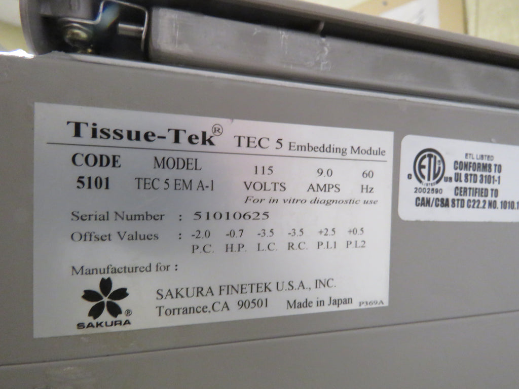- Sakura Tissue-Tek TEC 5 Tissue Embedding console p/n TEC 5 EMA-1 115 Volts