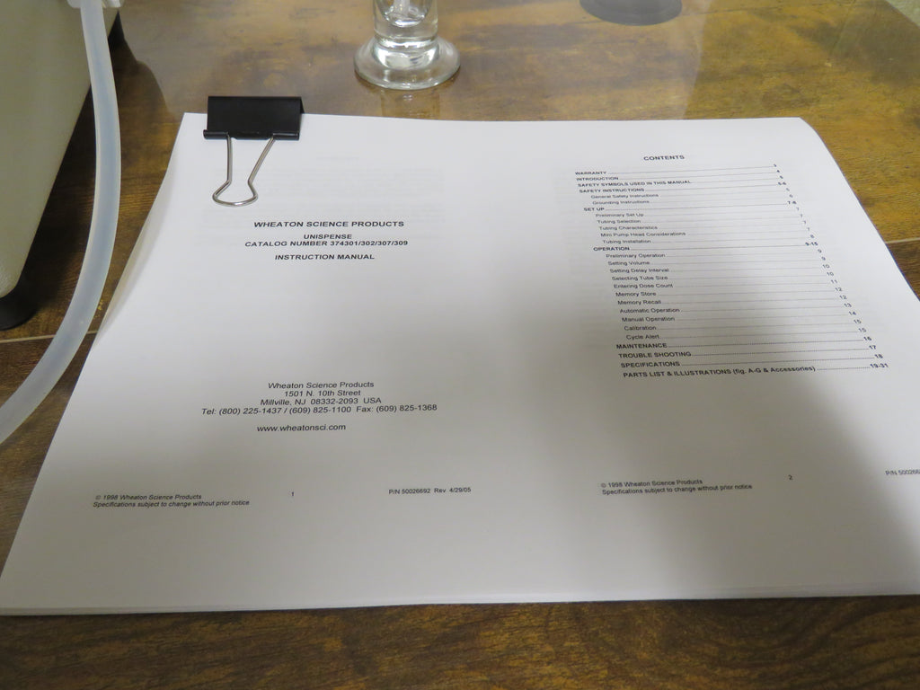 - Wheaton Unispense MINI Peristaltic liquid pump p/n 374307 120 Volts