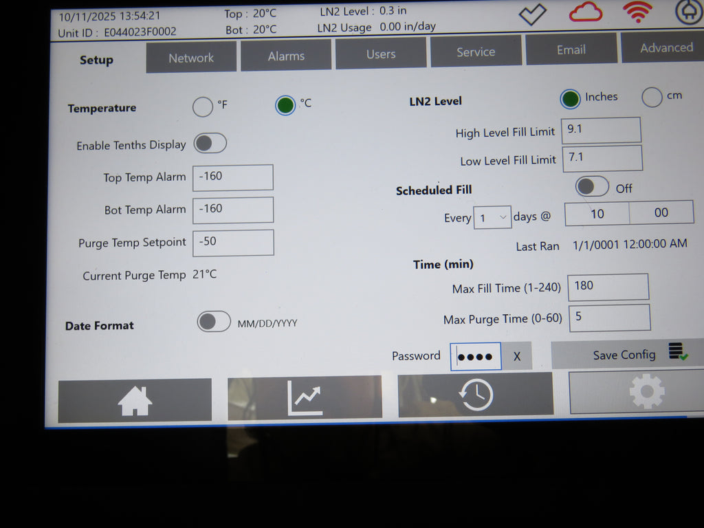 - Touchscreen controller with WiFi, LAN, text and email alerts automatically maintains the freezer conditions