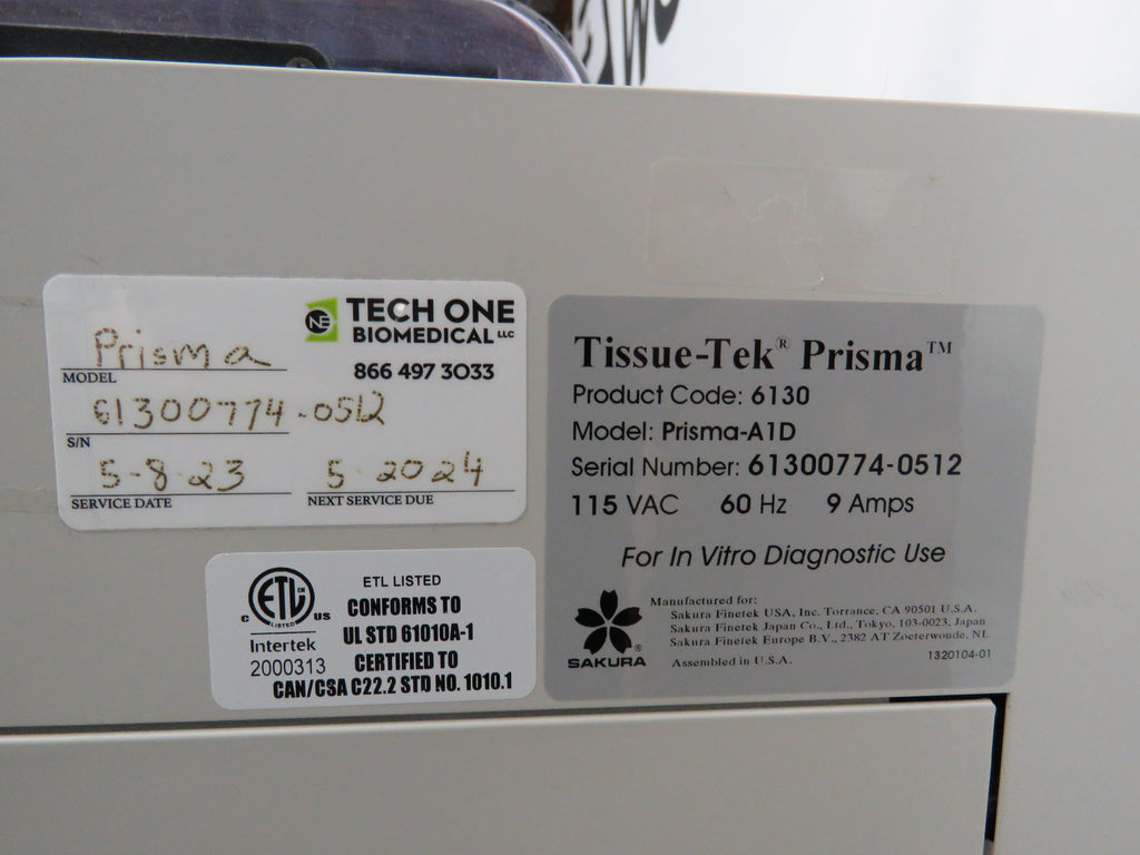 Overall, the Sakura Tissue-Tek Prisma 6130 Slide Stainer Workstation is a versatile and efficient tool that is well-suited for use in histology and pathology laboratories. It is capable of staining slides at a high speed and with consistent results, and is designed with advanced technology and user-friendly features to make it easy to use and maintain.